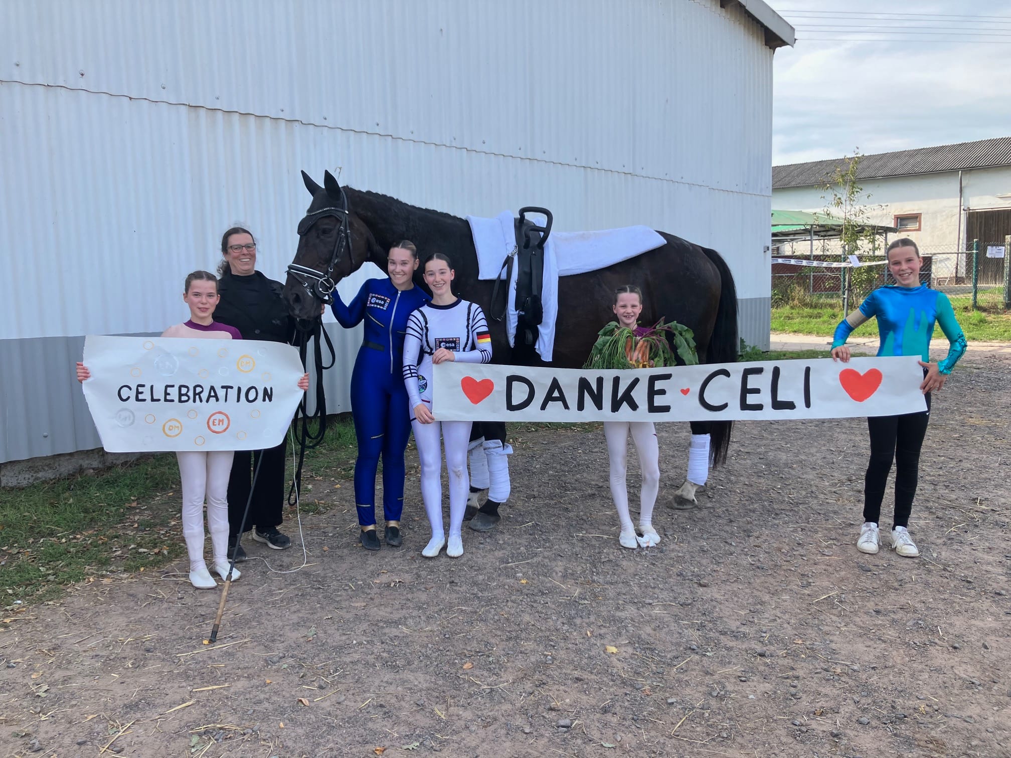 Das mit erfolgreichste rheinland-pfälzische Voltigierpferd geht in Rente! Vor 14 Jahren kam Celebration nach Mainz-Ebersheim. Trainerin und Longenführerin Alexandra Dietrich berichtet: „Wir haben ihn damals beim CVI Krumke direkt von der Weide gekauft und mitgenommen. Wir sind sozusagen mit einem Pferd zum CVI gefahren und mit zwei nach Hause gekommen.“ Von da an Begann die Erfolgsgeschichte dieses einzigartigen Pferdes, vor allem mit dem Durchbruch von Chiara Congia im Einzel. Celebration stellte immer mehr seine Zuverlässigkeit unter Beweis und gewann 2014 den Vizetitel mit Congia bei der DJM in Münchehofe. Chiara, Alex Dietrich und Celebration kamen im selbem Jahr mit der Bronzemedaille von der EM in Kaposvar/Ungarn zurück. 2015 wurde es dann Platz 5 bei der Junioren-WM. Der Höhepunkt dann 2016 – nach dem Sieg beim Preis der Besten und der DJM trug der Wallach das Ebersheimer Juniorteam zum Vizeeuropameistertitel als Team Germany. 2017 gab es noch einen 6. Platz mit Hannah Steverding in Ebreichsdorf bei der Junioren-WM.